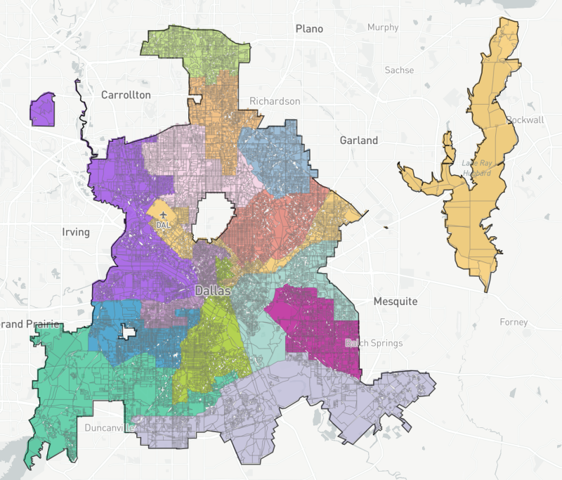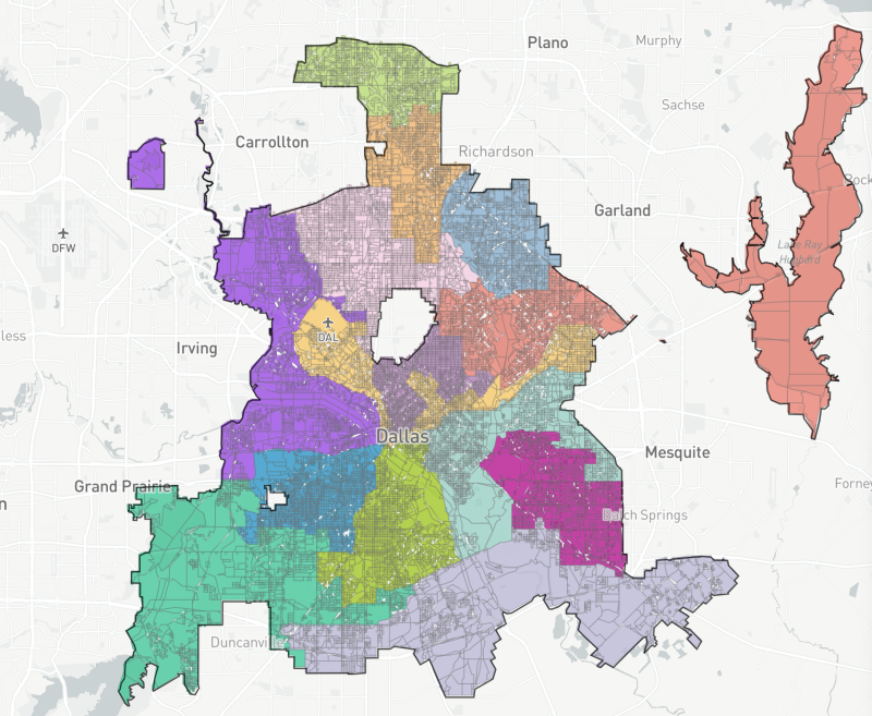 • District 14’s boundaries were modified in Oak Cliff, and it lost a section west of N. Stemmons Freeway.