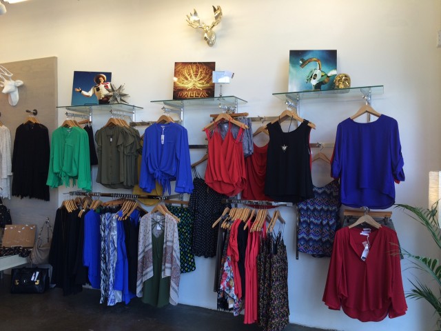 - Breezy, loose-fitting apparel is prevalent in the store.