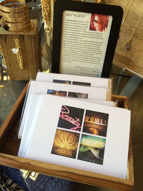 Handbags, jewelry and the like are still part of Accents’ retail mix, and Huang now sells gift items and women’s clothing, too. She describes the style as “urban bohemian,” and says it’s a good fit with retail neighbors Urban Outfitters and American Apparel, which are “a little edgier.” Huang’s shop is decidedly more feminine, catering to both SMU students and trend-seeking women. (She carries a number of those billowy polyester tops popular with sorority girls and mothers alike who are hoping to disguise weight fluctuations.) Local artists and designers also are in the mix, including b.b.lila jewelry and photographer Sheri Hall, whose purchasable photographs decorate the store.