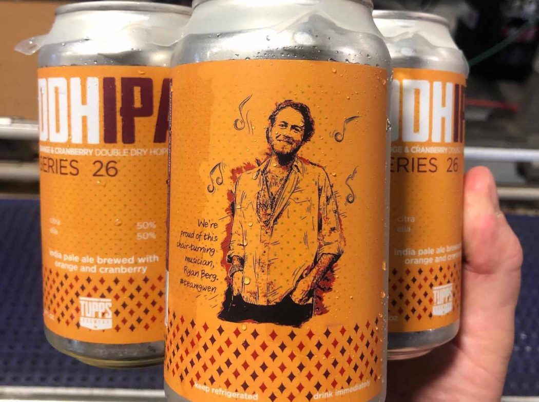 Now that he’s home from L.A., Berg has been busier than ever, doing shows at socially-distanced halls and outdoor venues. Last Saturday he played at TUPPS Brewery in McKinney, where they released their new Series 26 Double Dry Hopped IPA with orange and cranberry. Berg’s image is on every can.