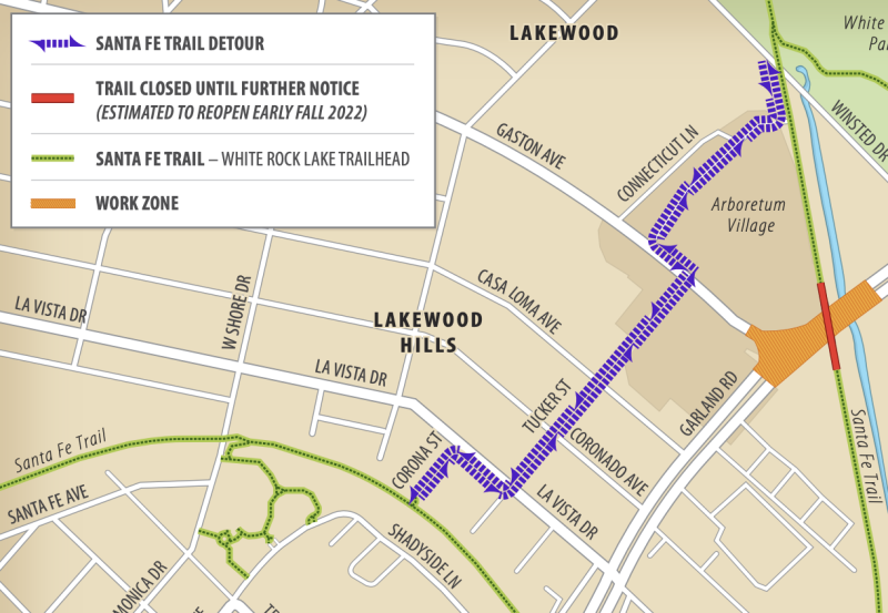 The detour route for the Sante Fe Trail around construction at the Gaston-Garland-Grand intersection has been updated.