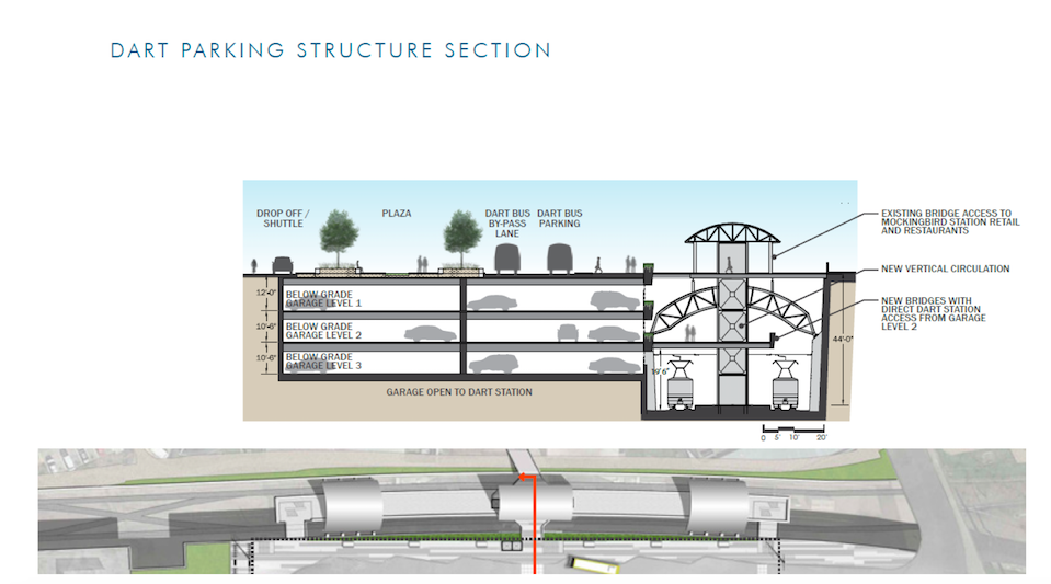 Rendering of an underground parking garage to be built at DART’s SMU/Mockingbird Station. (Rendering courtesy of DART.)