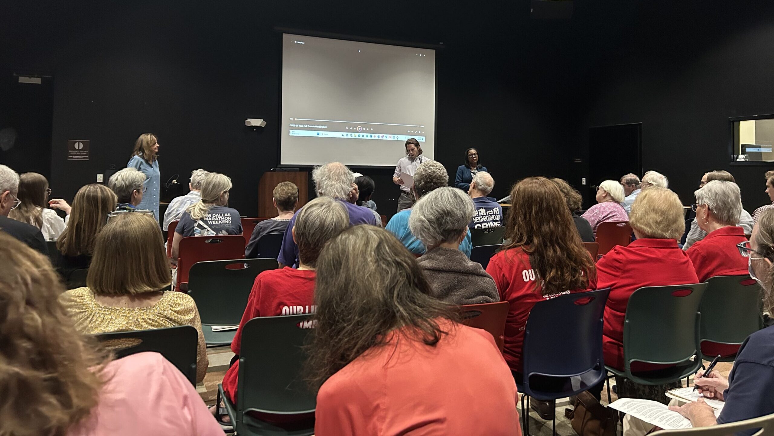 A joint budget town hall for Districts 2 and 14 took place Aug. 25 at the Samuell-Grand Recreation Center. Photo by Madelyn Edwards.