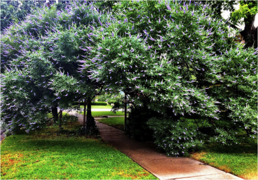 Hippocrates wrote of the Vitex tree’s mysterious medicinal qualities thought to cure diseases of the spleen and uterus. Whether or not the tree can cure various ailments is undetermined, but the draw it has in our neighborhood is magical.