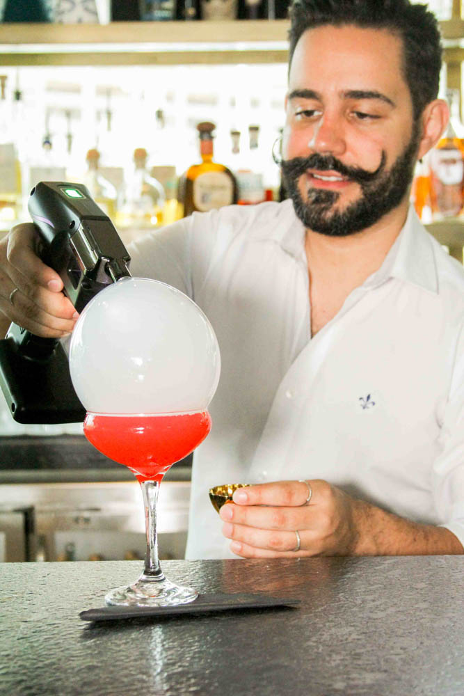 The cocktails are spins on classics. A lemon drop, but make it raspberry topped with a ball of fog. An old fashioned, but use maple syrup instead of sugar cubes.