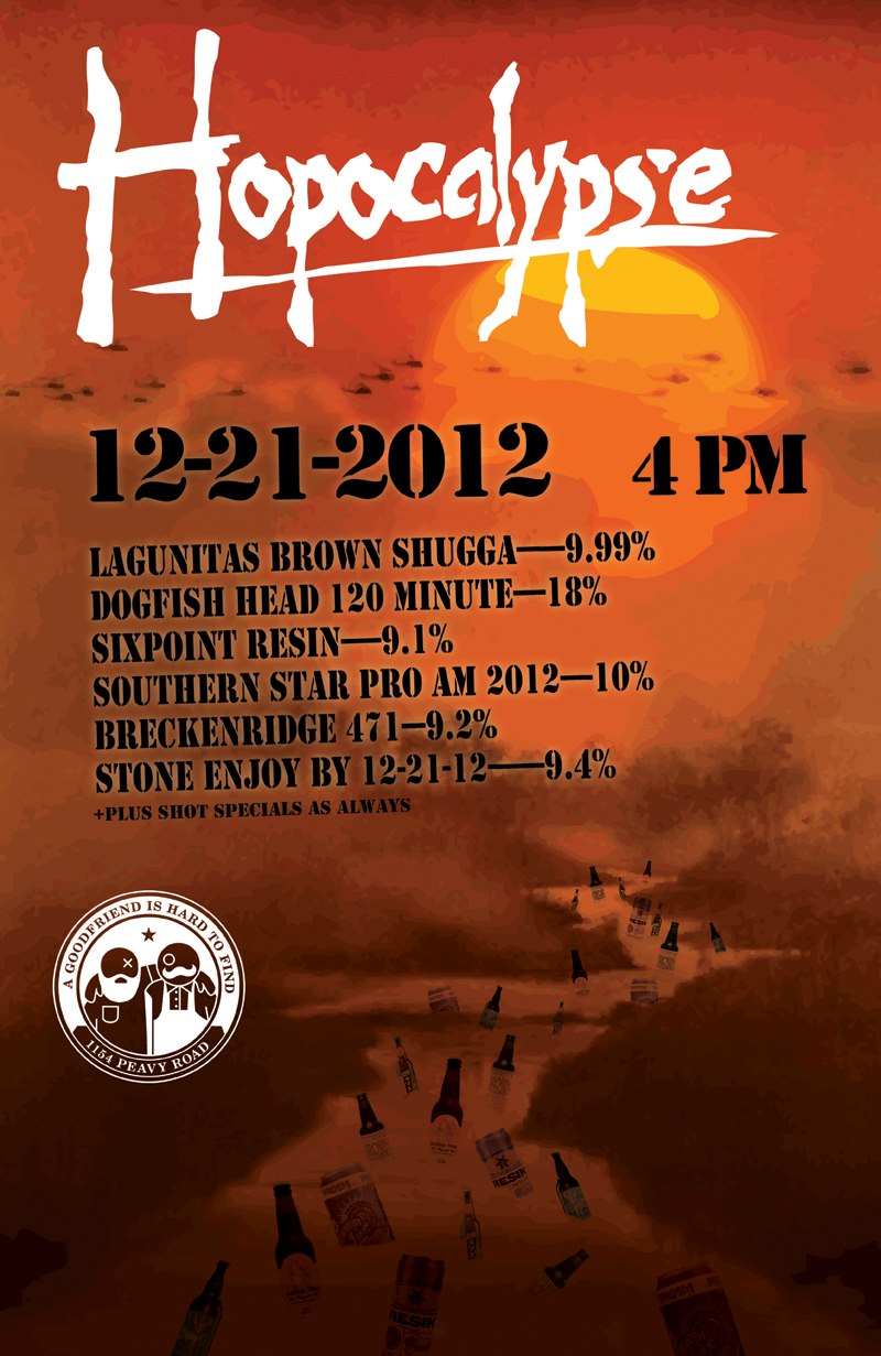 It’s the Hopocalypse at Goodfriend Beer Garden and Burger House Friday, Dec. 21 from 4 p.m.-2 a.m. Basically, there will be lots of beer and a band.