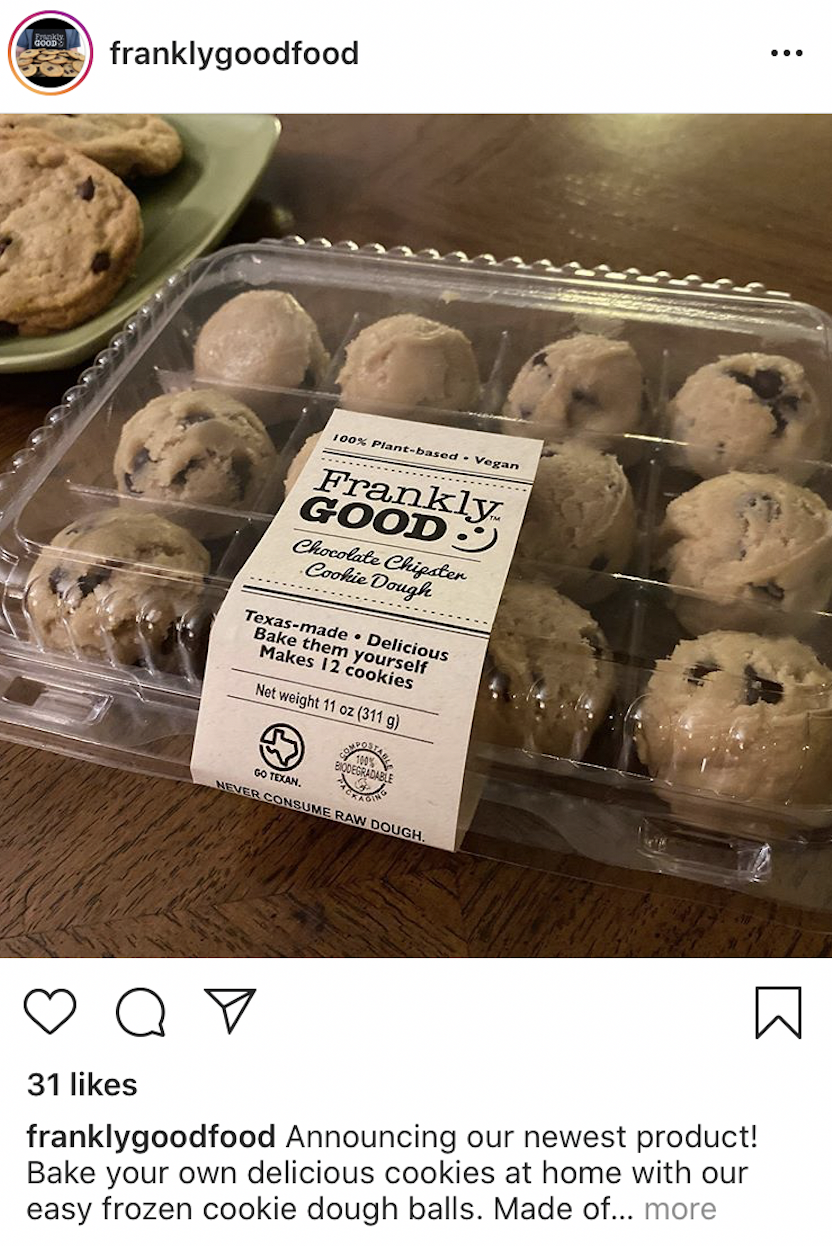 - Frankly Good cookie dough (Photo from Instagram @franklygoodfood).