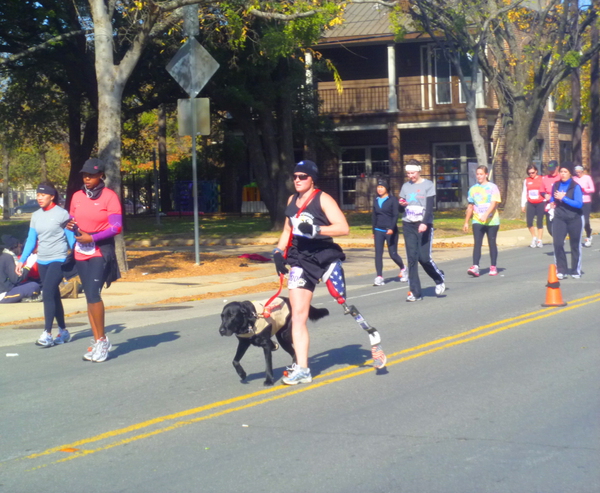 Neighbor Lilia Estrada got this picture of Melissa Stockwell of Chicago running in the MetroPCS White Rock Marathon. Stockton lost her left leg to a roadside bomb in the Iraq War in 2004, and she completed the half marathon Sunday.