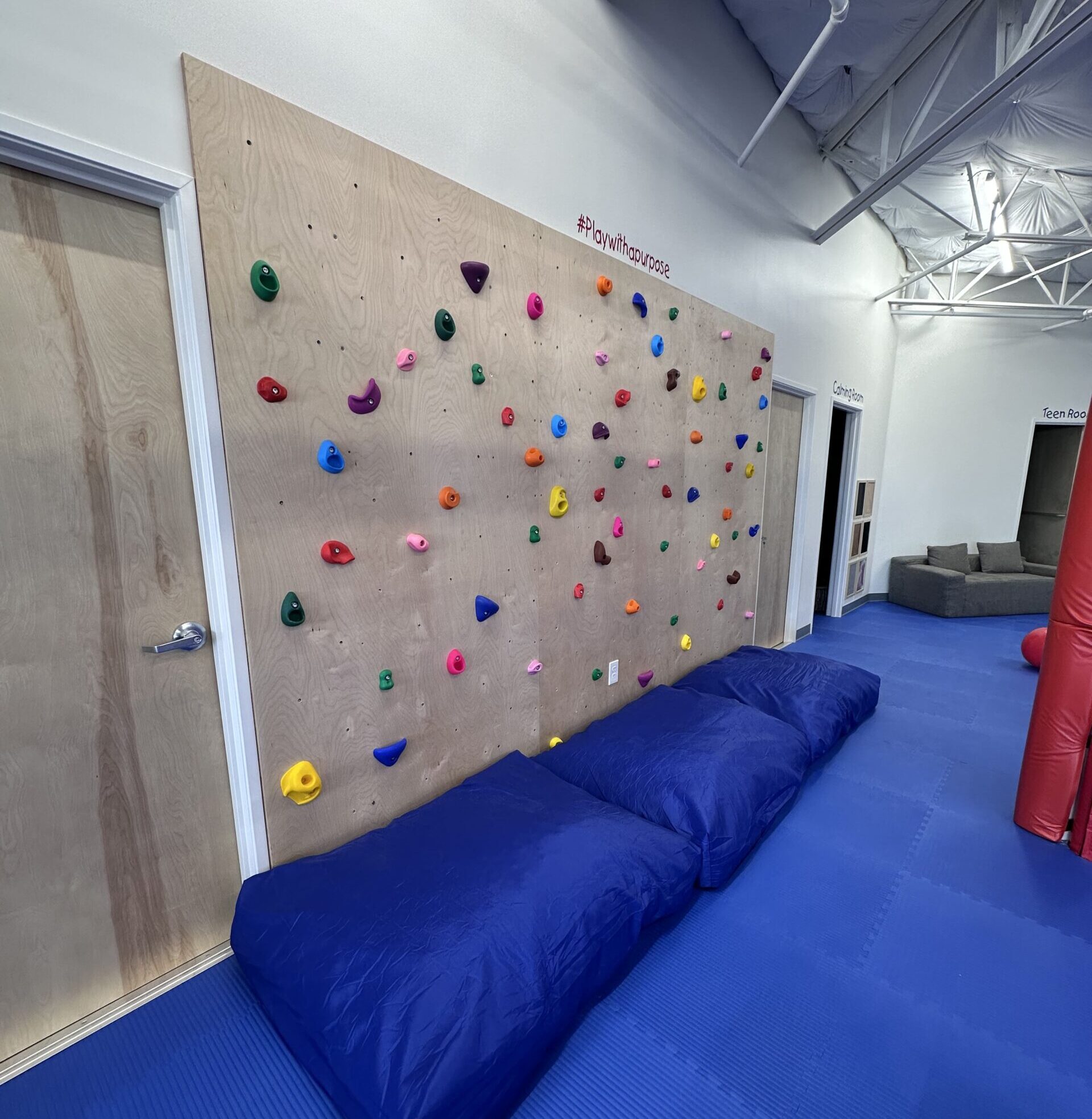 Rock climbing wall at We Rock the Spectrum Kids Gym. Photo courtesy of Courtney Castaneda.