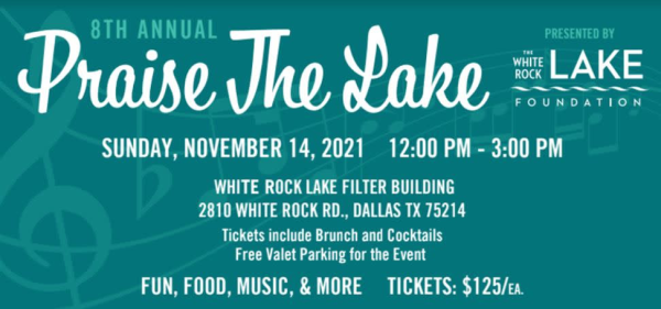 The eighth-annual Praise the Lake event is on this weekend. Hosted by the White Rock Lake Foundation at the Filter Building, neighbors can enjoy brunch and cocktails and listen to live music.