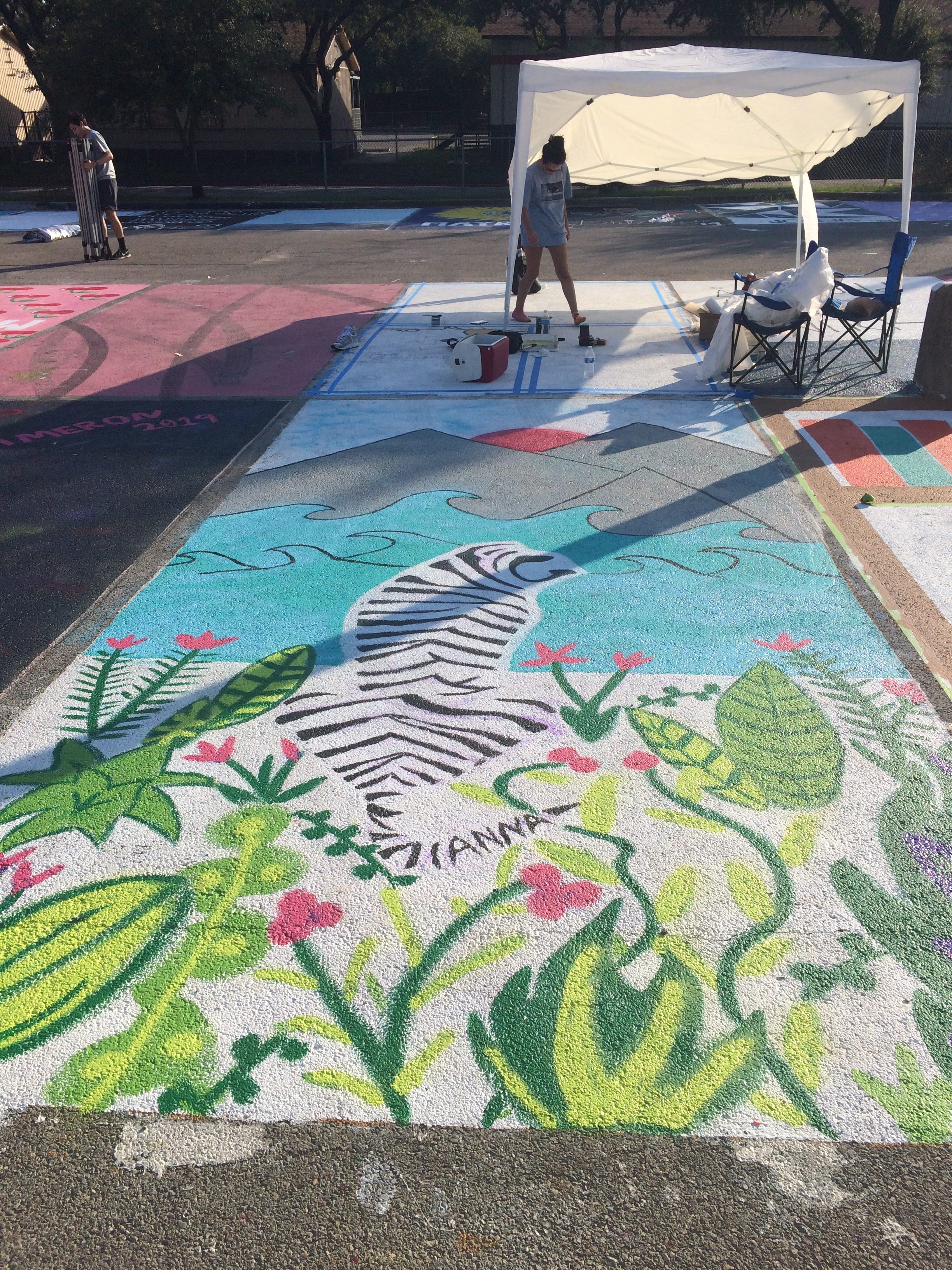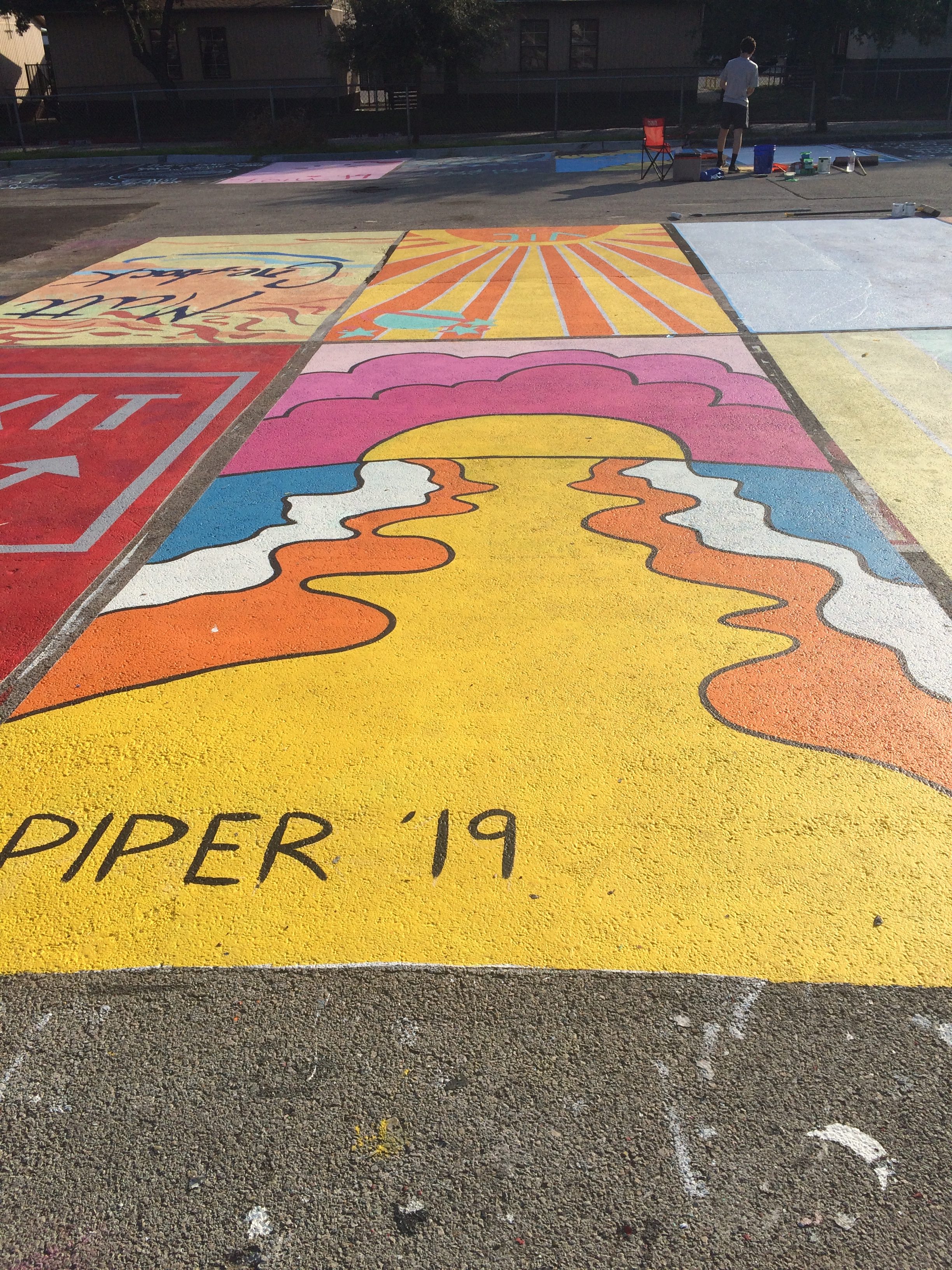 The beginning of the school year means that Woodrow Wilson High School seniors are bearing the heat of August asphalt and painting their parking spots. Like many other high schools, Woodrow seniors pay for a parking spot and paint it as they please, while the funds support the senior class.
